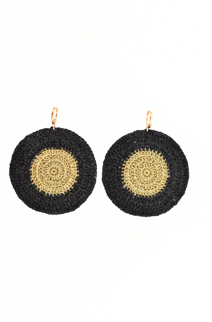 Introducing the Eclipse Negro Earrings – a stunning fusion of sophistication and unique design. These earrings feature delicate metalized thread and luminous crystal pearls, creating a captivating contrast that draws the eye. Crafted with 18k gold-plated hooks for a touch of elegance, their lightweight design ensures comfort throughout the day. The Eclipse Negro Earrings are the perfect accessory to add a modern, chic flair to any outfit, making a bold yet refined statement.