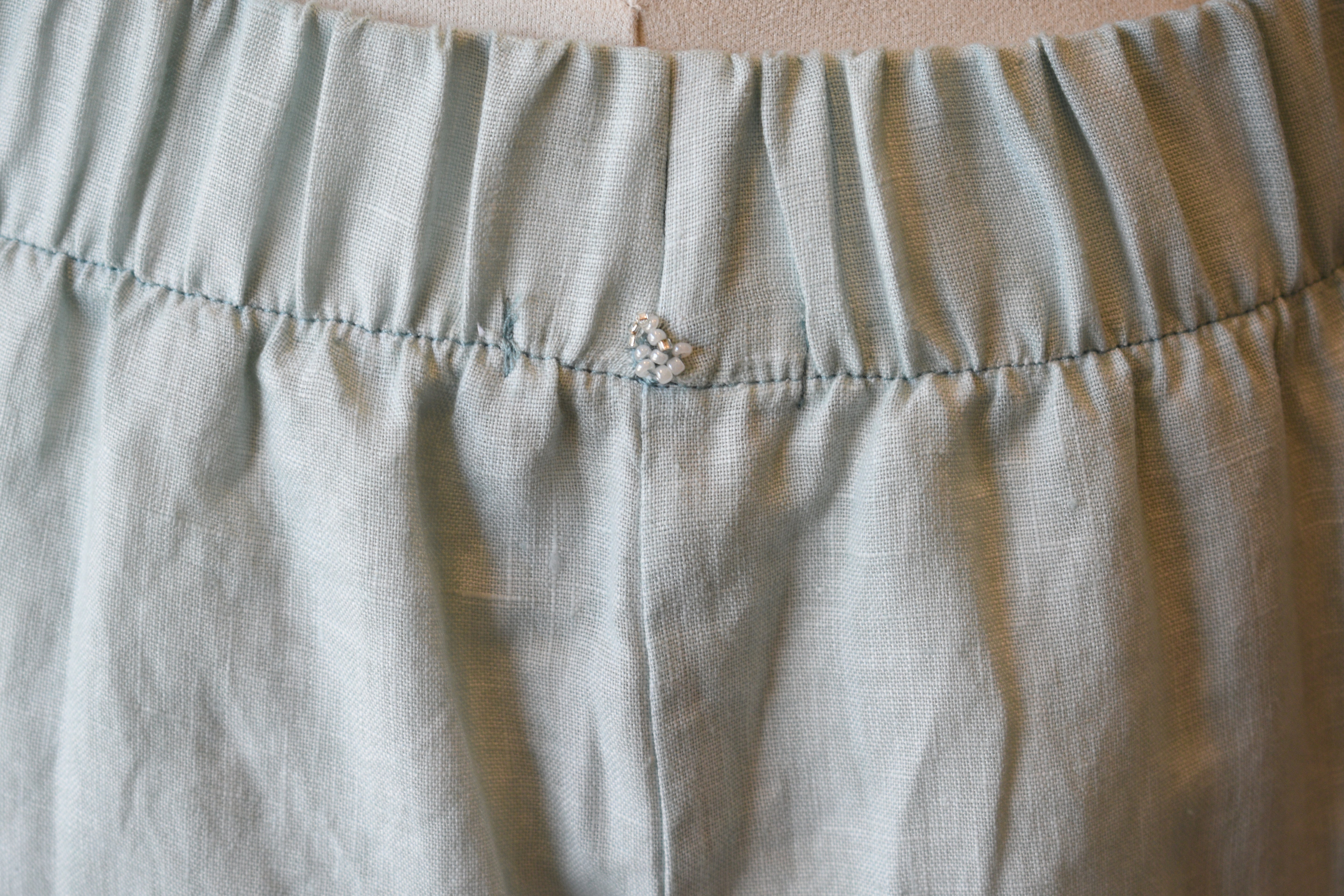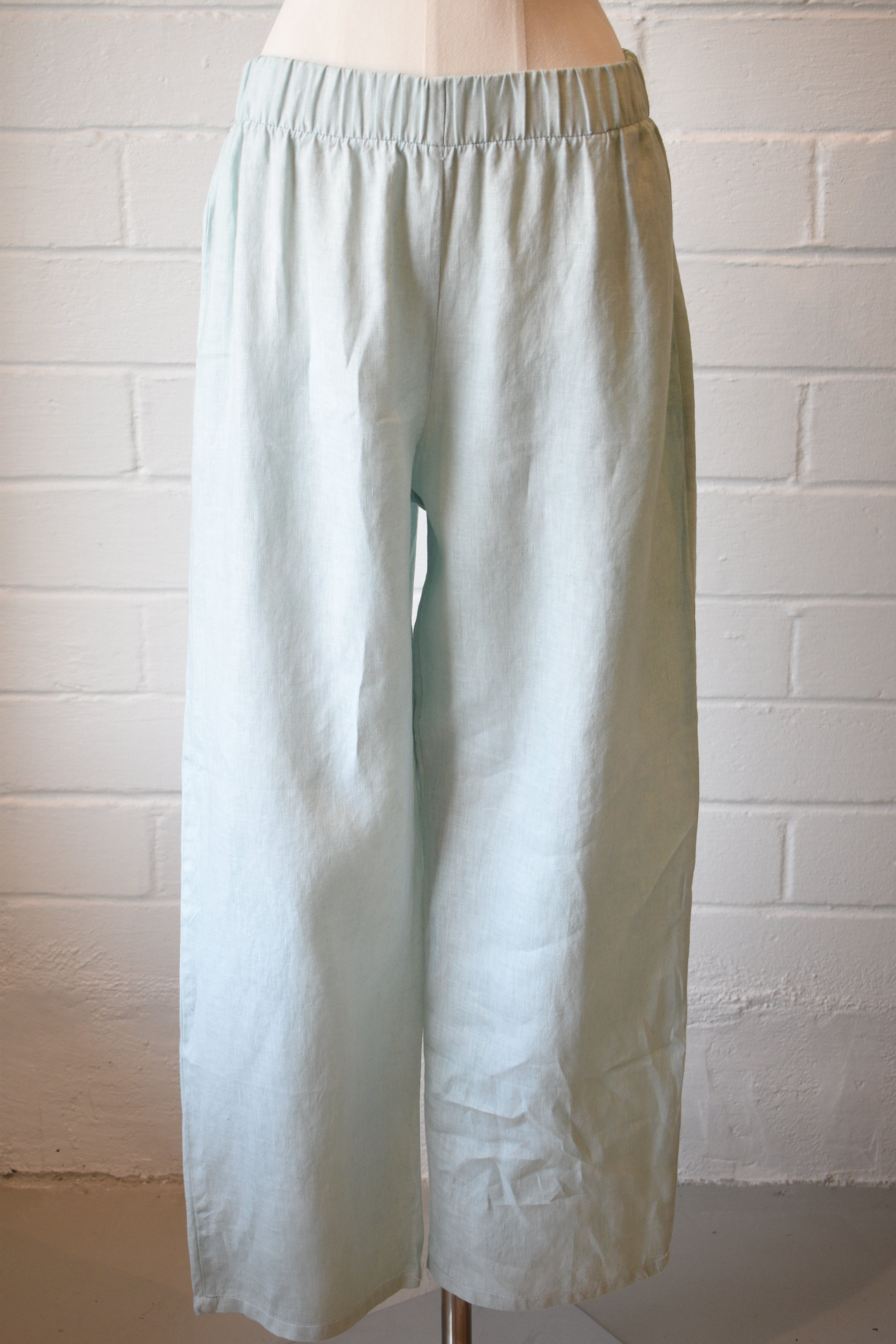 Mint Linen Pants – 100% Linen with Beaded Detail & Elastic Waistband