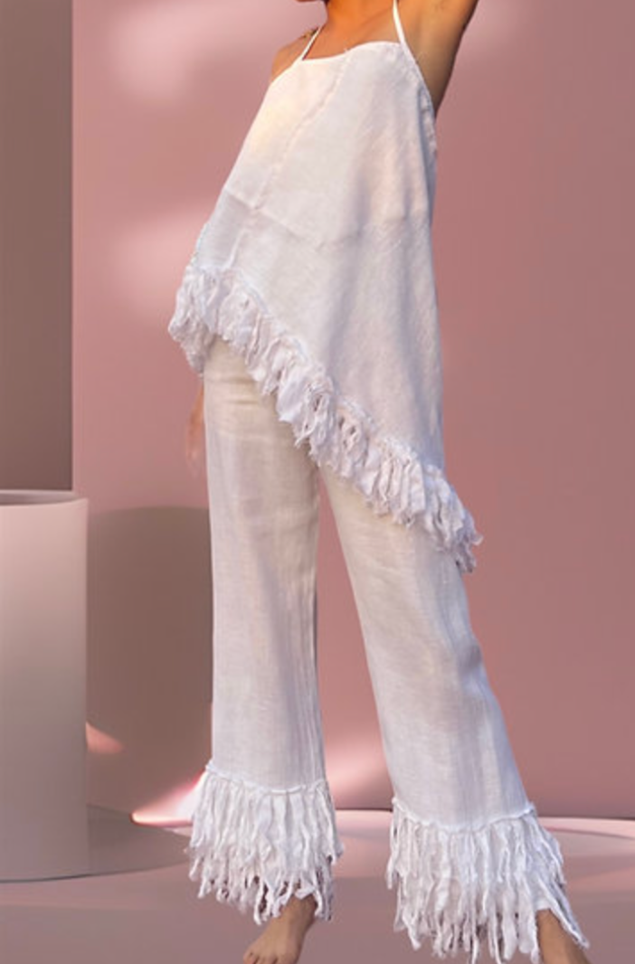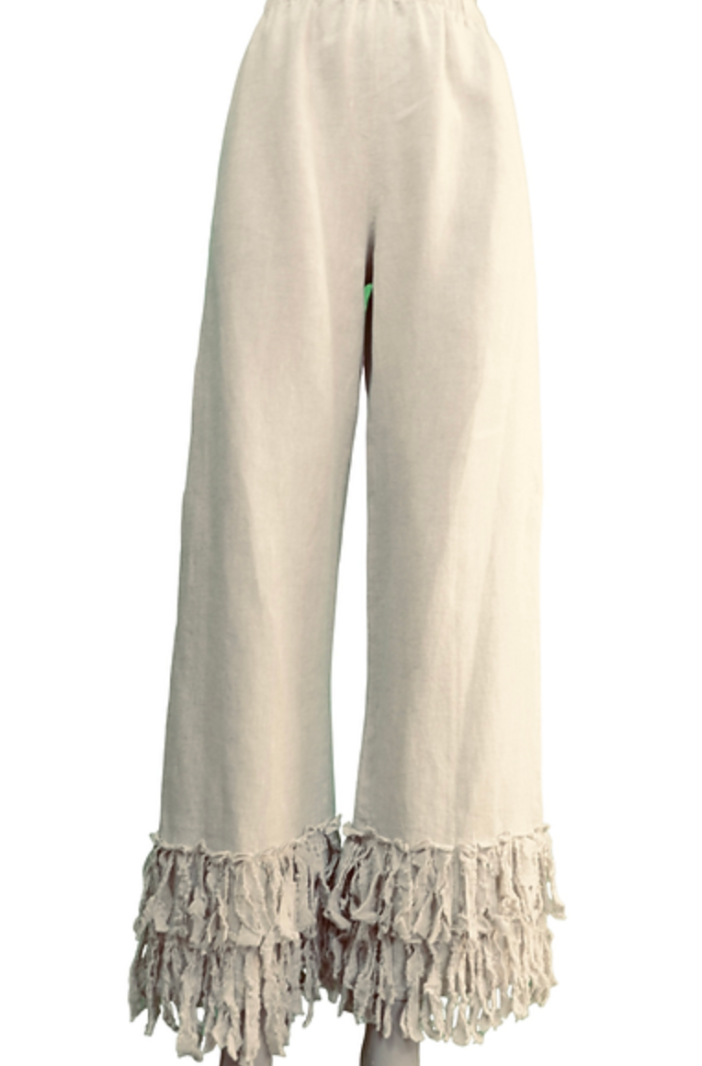 Add the Fringe Linen Pants to your collection for a versatile, eco-friendly fashion staple that combines timeless style with artisanal charm.