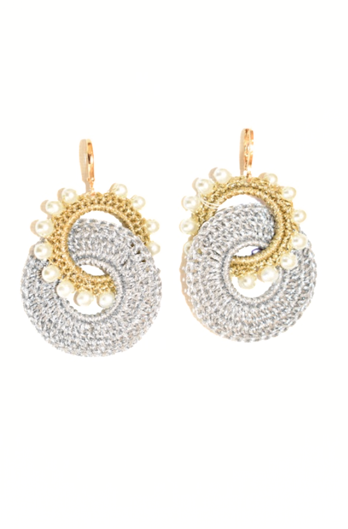 These elegant earrings feature metalized thread and crystal pearls with 18k gold plated hooks. Lightweight and stylish, they are perfect for any occasion.