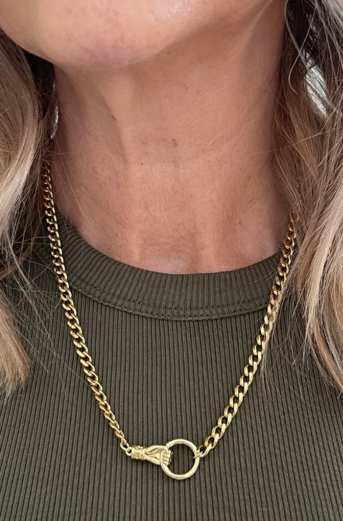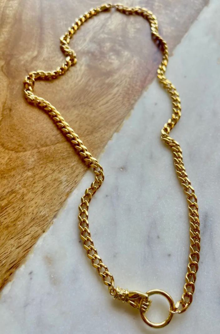 Add timeless elegance to your jewelry collection with the Miruna Necklace, featuring a gold-filled chain and a striking door knocker link. Designed for versatility, this necklace is perfect for layering or customizing with clip-on charms to suit your unique style.