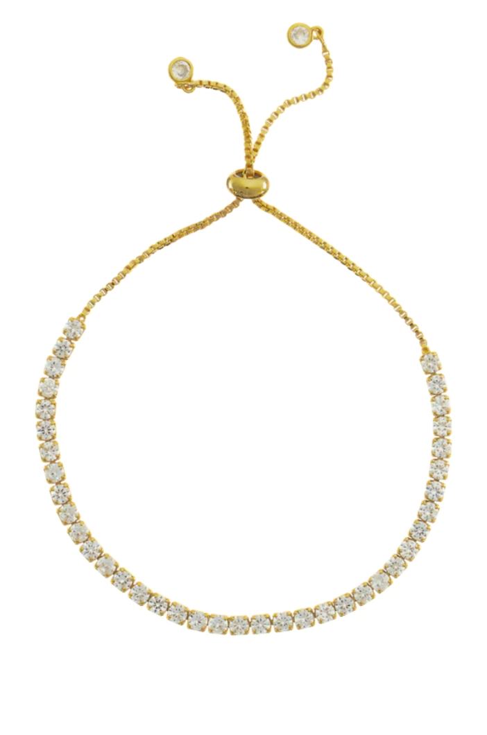Elevate your accessory collection with our Tennis Bracelet, a timeless piece that blends luxury with everyday wear. Crafted from durable brass and plated with 18K gold, this bracelet exudes elegance while ensuring long-lasting shine. Its adjustable, one-size-fits-all design makes it perfect for any wrist size, offering comfort and versatility. Designed to be water-resistant, hypoallergenic, and nickel-free, this bracelet is safe for sensitive skin and ideal for daily wear.