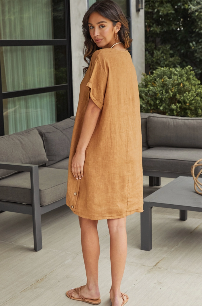 Side Button Linen Dress