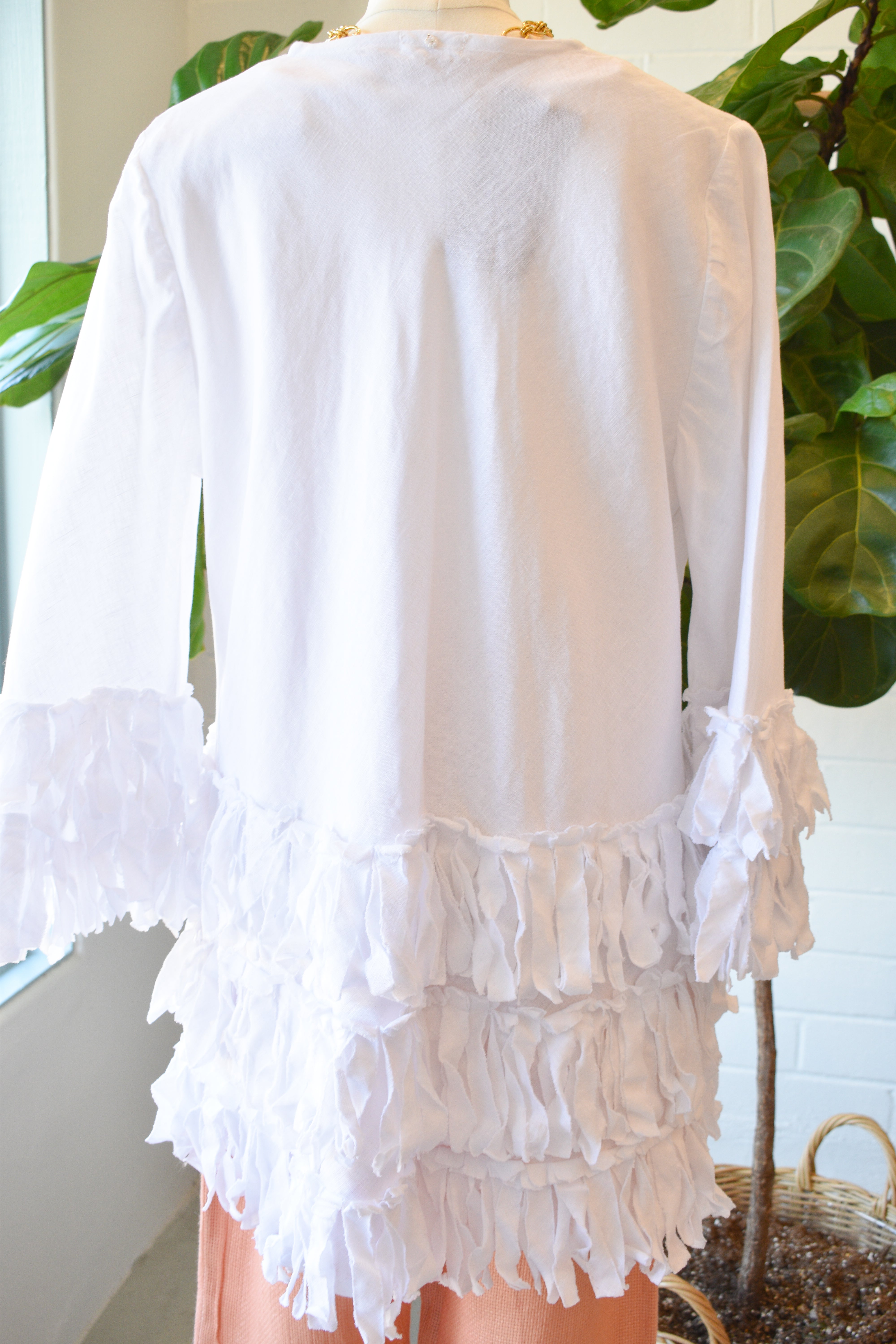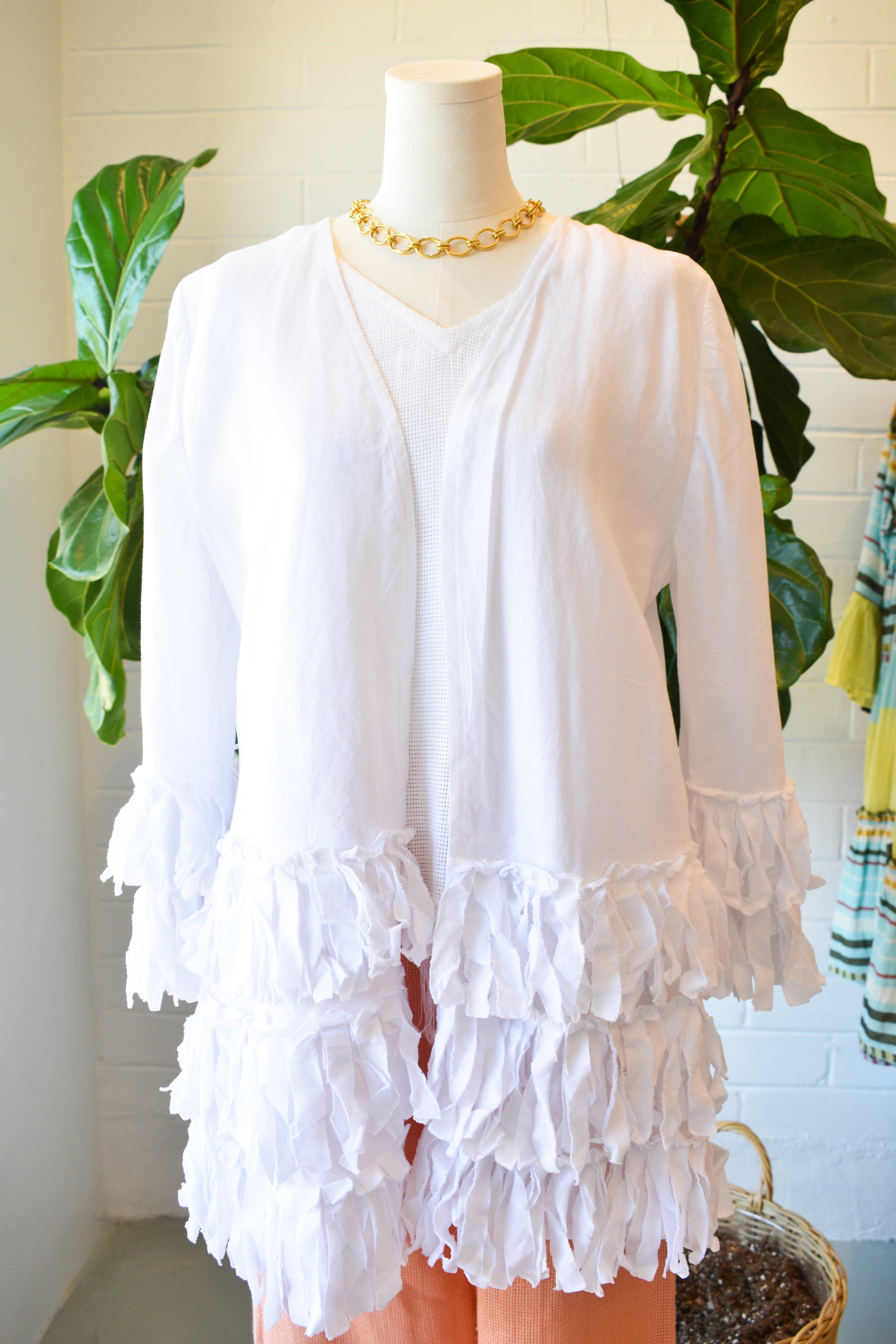 White Fringe Cascade Kimono – Handcrafted Elegance in Every Stitch