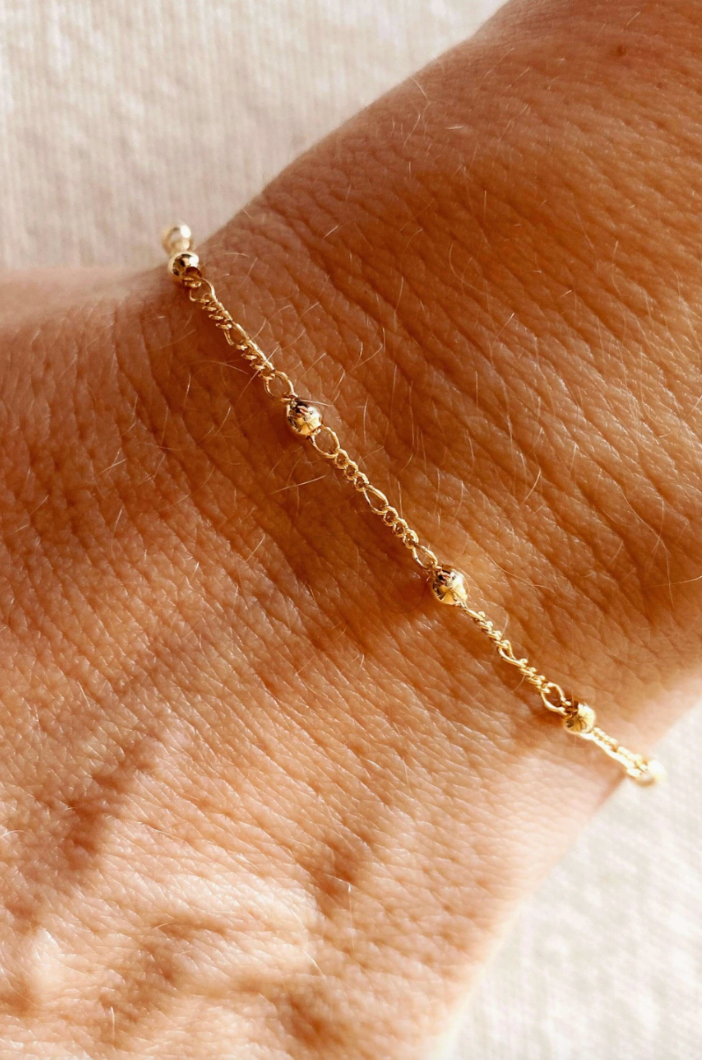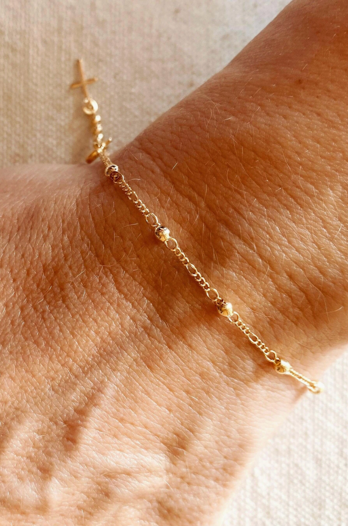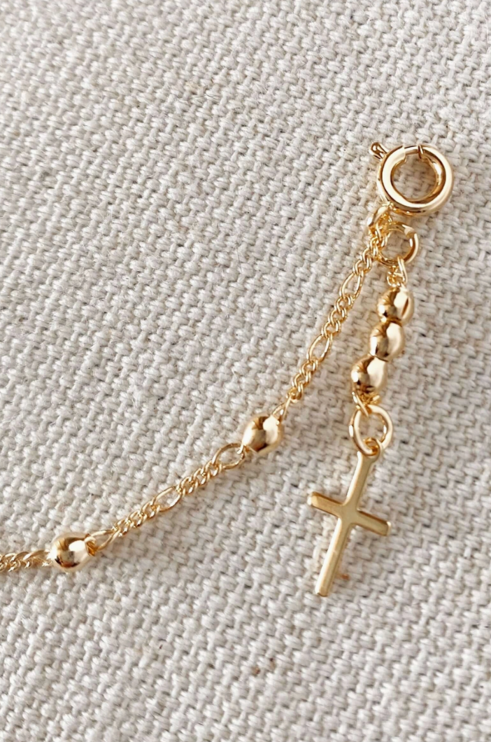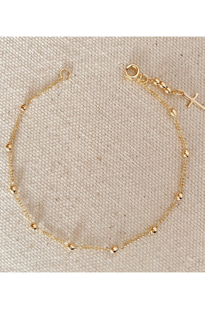 18k Gold Filled Beaded Bracelet with Cross Charm – A Timeless Expression of Faith