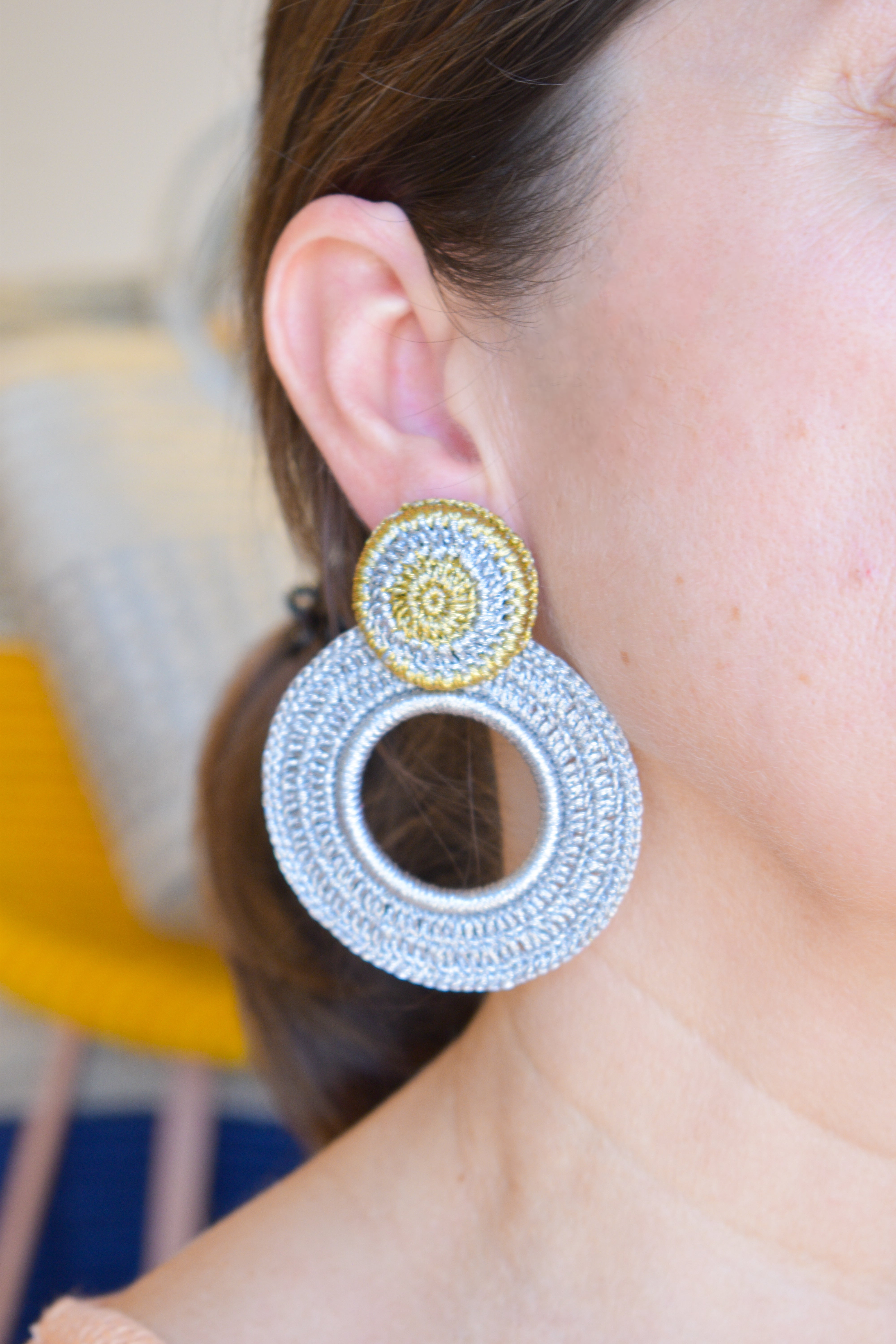 Bring effortless sophistication to your everyday style with our Inca Earrings, meticulously handcrafted in the artistic town of San Miguel de Allende, Mexico. Created for the woman who values bold design and artisanal quality, these earrings feature a stunning geometric silhouette inspired by ancient motifs, brought to life with metallic threadwork and 18k gold-plated hooks.