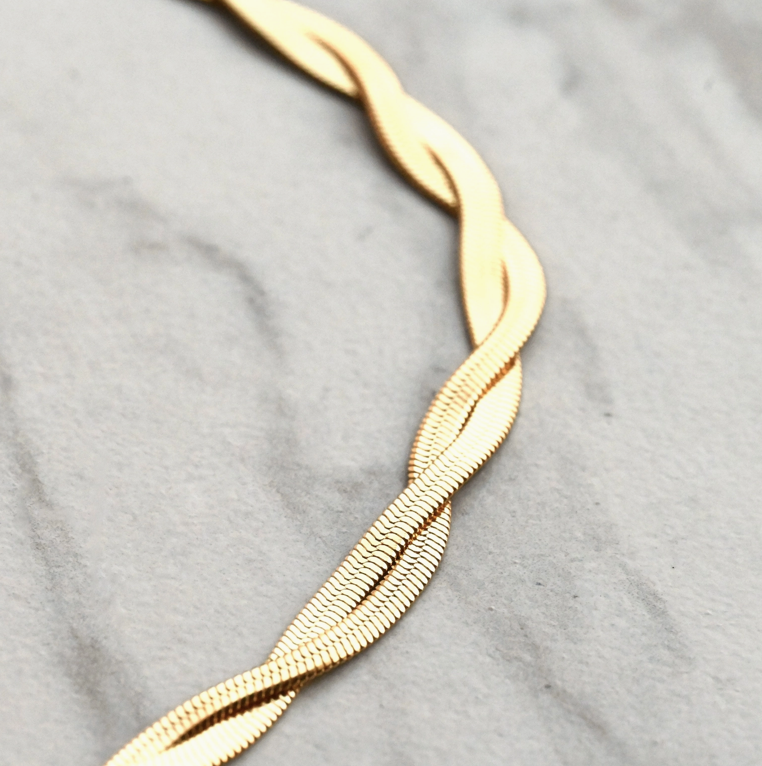 Elevate your jewelry collection with our Braided Herringbone Chain Choker, a timeless yet modern piece designed to complement any outfit. Crafted from high-quality stainless steel, this gold-tone chain necklace features a sleek, braided herringbone design that catches the light beautifully, adding a touch of effortless elegance.