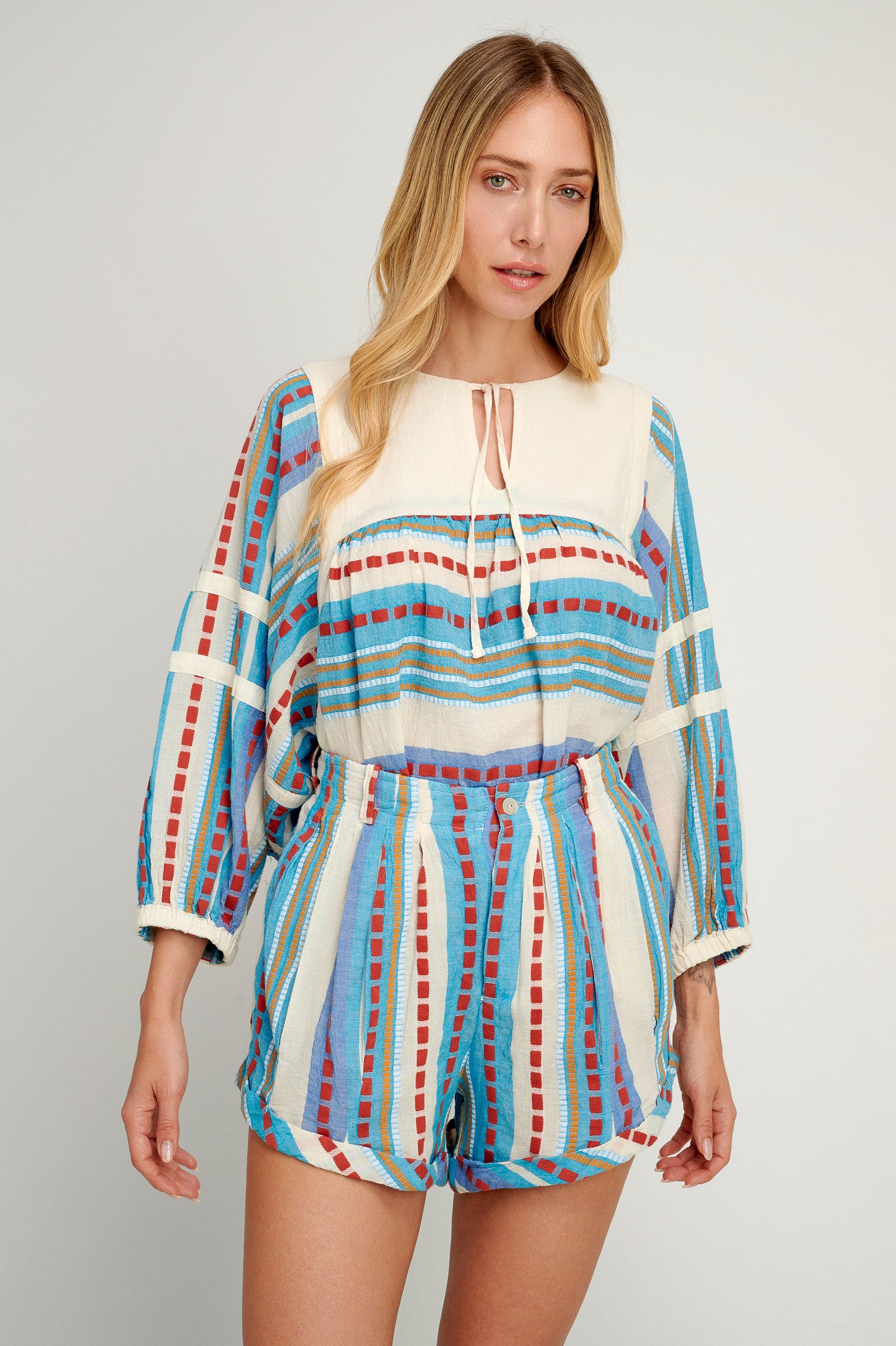 Vibrant, effortless, and timeless—the Alonissos Blouse is a celebration of color and craftsmanship. Made in Greece from 100% cotton, this lightweight and breathable blouse is designed for all-day comfort. Its beautiful multicolored design adds a lively, artistic touch to any outfit, making it the perfect statement piece. With a relaxed yet flattering fit, it pairs effortlessly with jeans, skirts, or matching pieces for a chic and polished look. Whether dressed up or down, the Alonissos Blouse brings a touch of Mediterranean charm to your wardrobe.