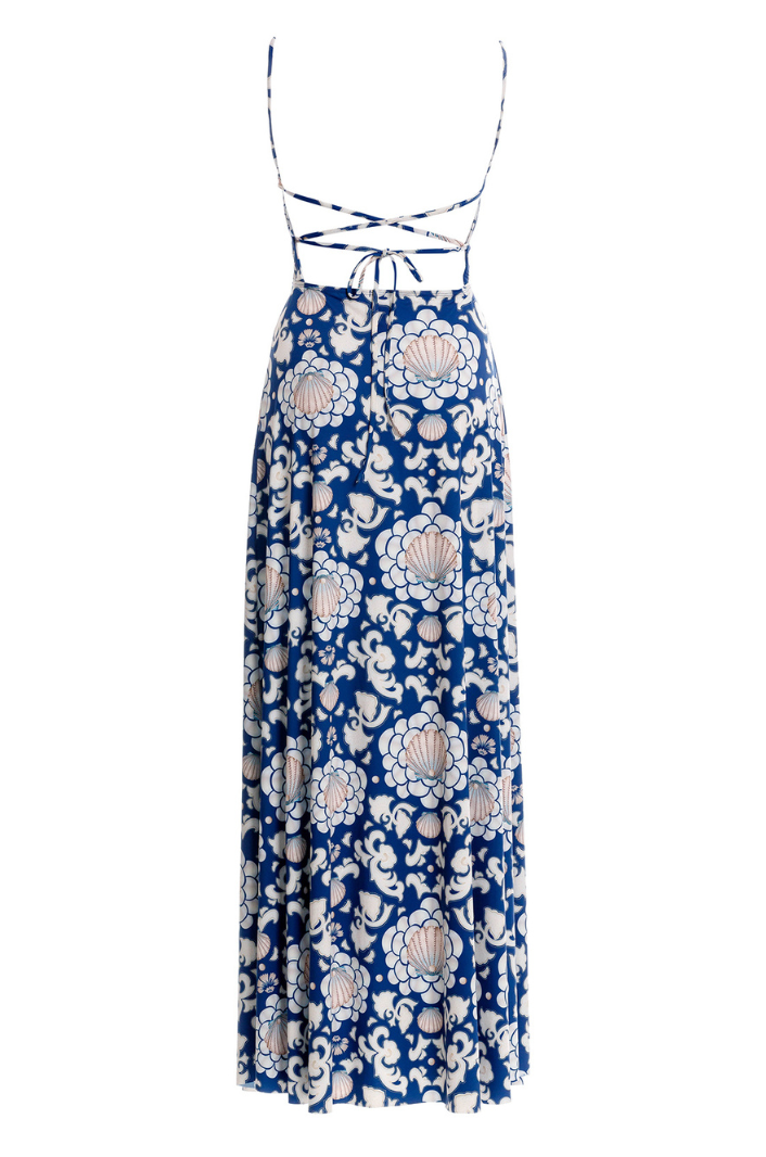 Designed with adjustable straps for a customizable fit, this elegant maxi dress blends comfort with refined femininity. The low open back with delicate tie details adds subtle allure, making it the perfect balance of sophisticated and striking.