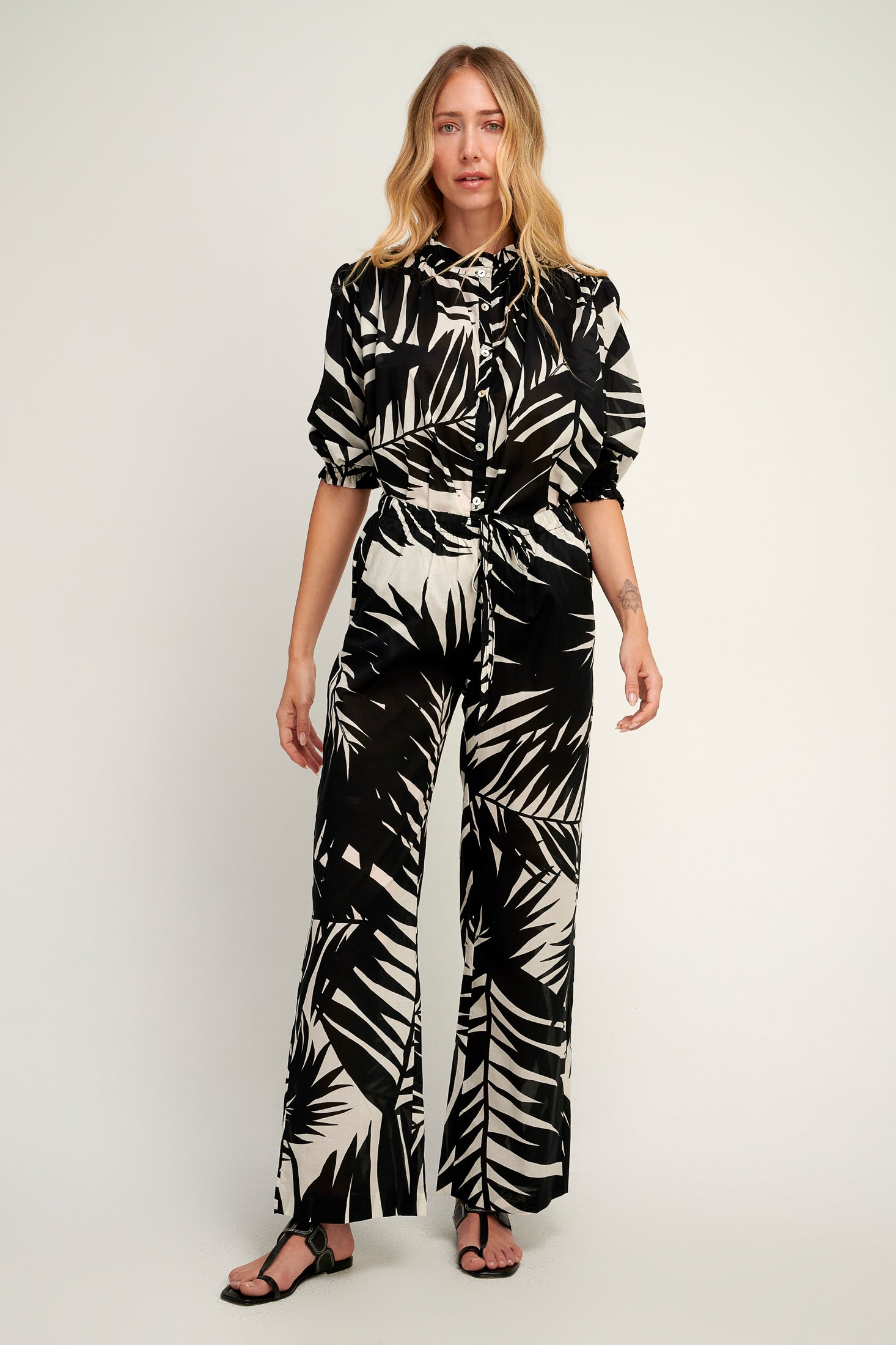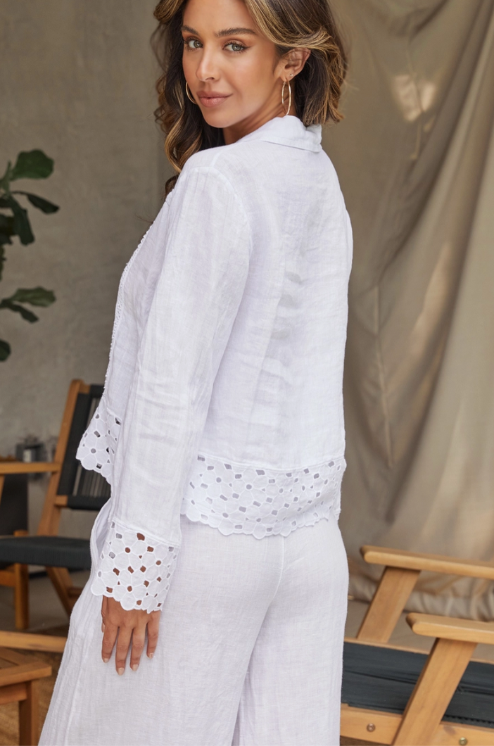 Linen Button Down with Embroidery Trim