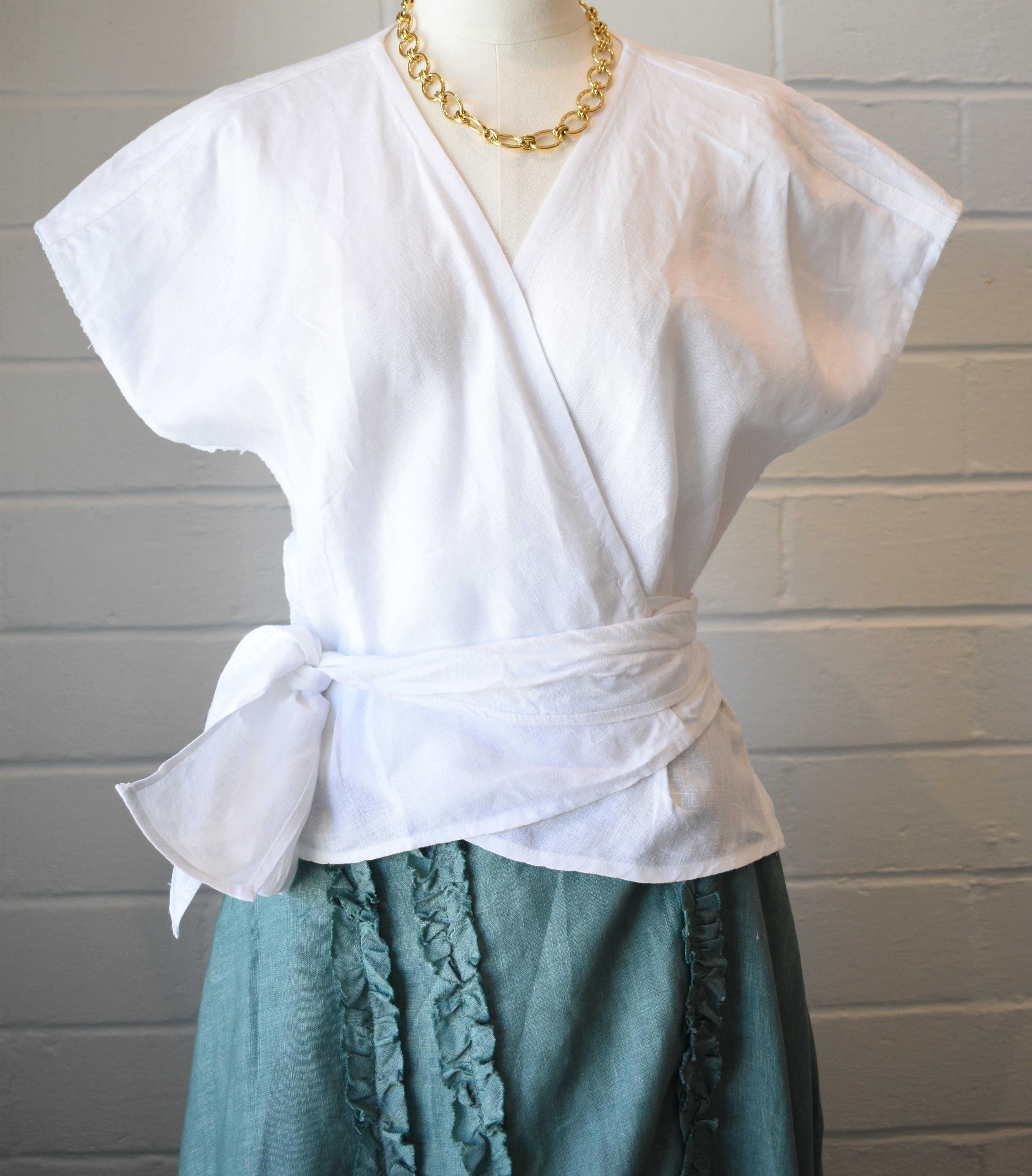 Linen White Wrap Top