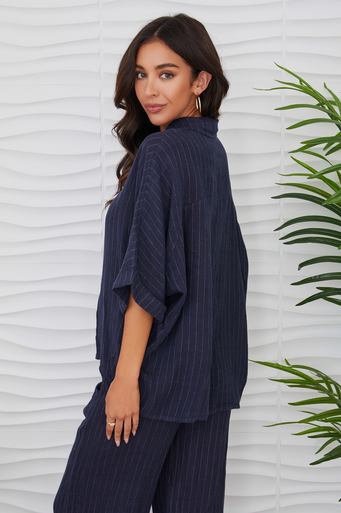 Linen Pinstripe Collared Top