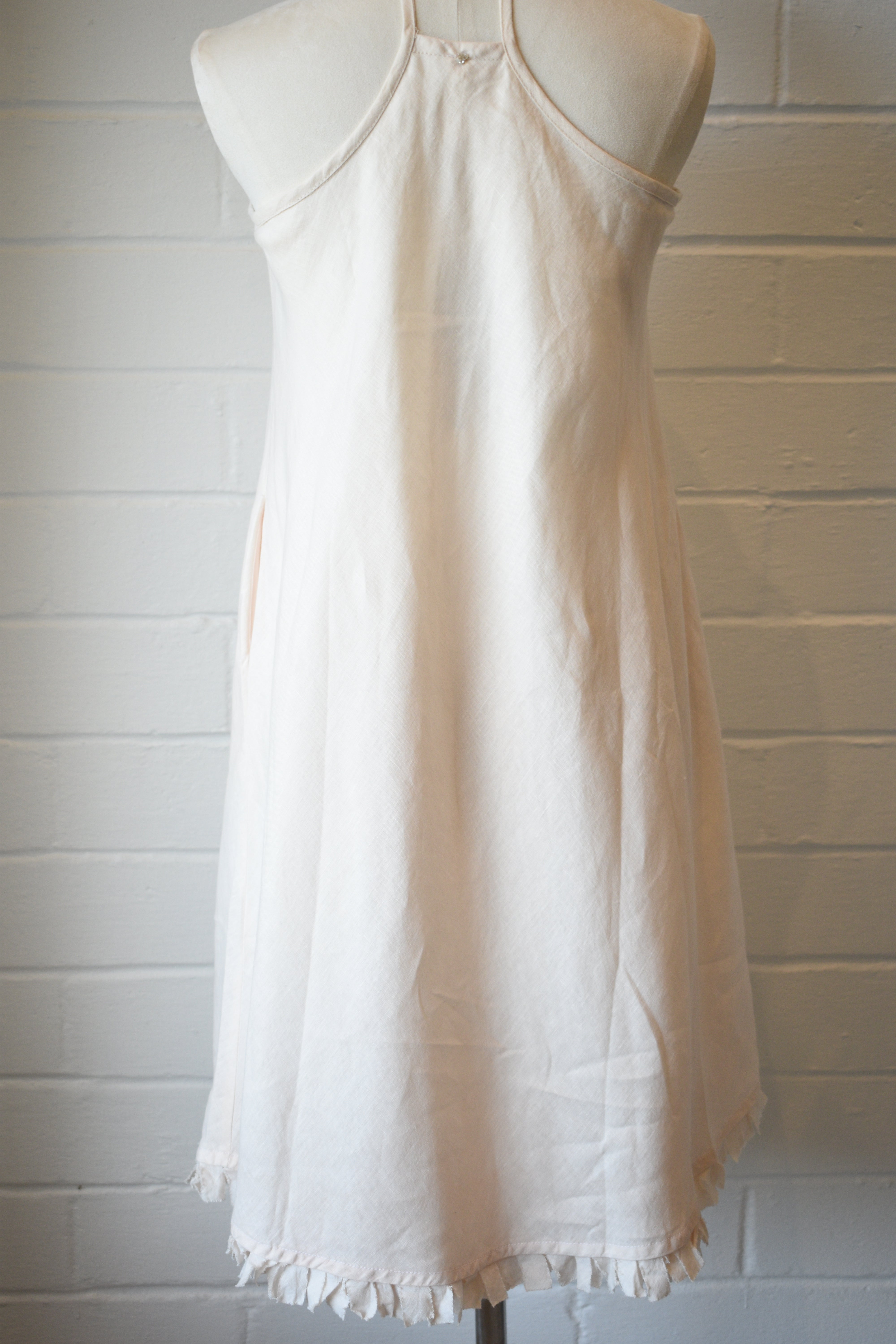 Its naturally textured linen drapes with ease, offering a relaxed yet refined fit that flatters all day long. Whether styled front-to-back for a deeper neckline or reversed for a more modest cut, this dress adapts to your mood, moment, and movement.